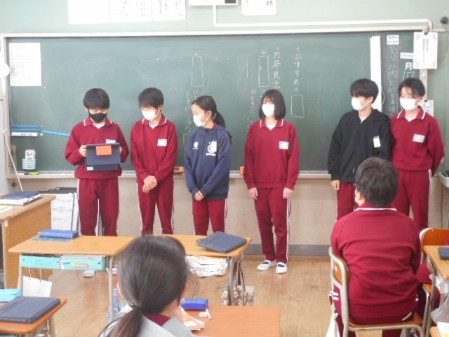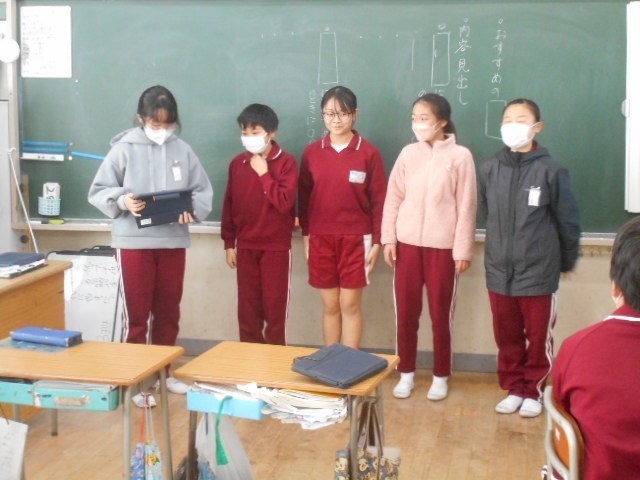 各グループでまとめたおすすめの食べ物、本、などを発表しました