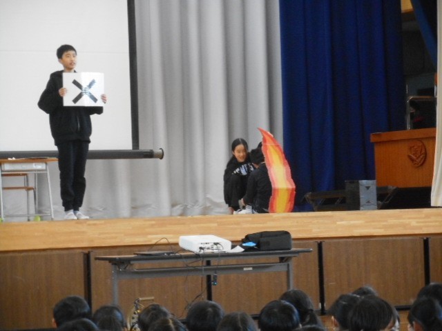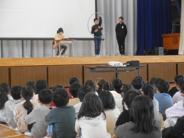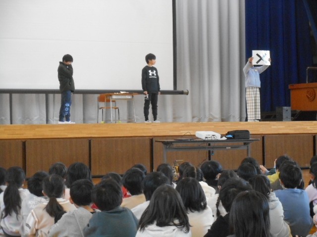 児童会からは冬休みに気をつけたいことなどを寸劇形式で発表しました。