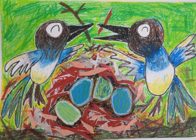 読書感想画の市の審査が行われ、本校から以下2点が最優秀作品として県の審査会に送られました。