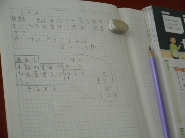 小数×小数の積の小数点の付け方を考えました