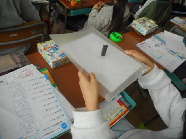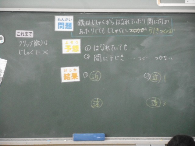 鉄は磁石から離れていたり、間に何かあったりしても磁石にひきつけられるのか実験して調べました
