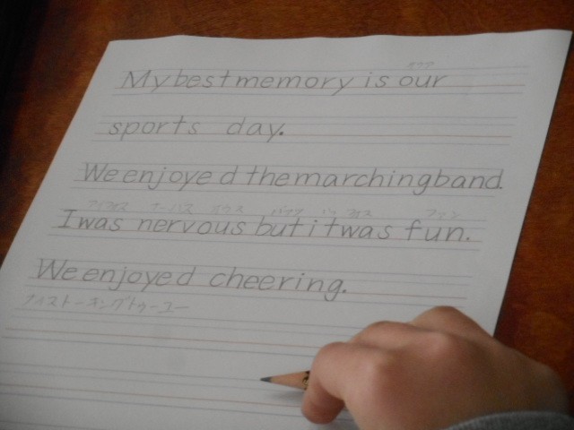 思い出を伝える文を書いたり、聞きあったりしました