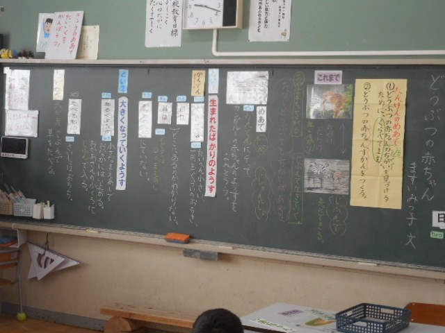 カンガルーの赤ちゃんについて読み取ったり、似ているカタカナの形について考えたりしました