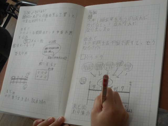 かけ算、わり算の問題を図と□で表して考えました