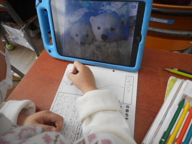「ことばあそび」の文を作ったり、「マイ動物の赤ちゃん」を書いたりしました