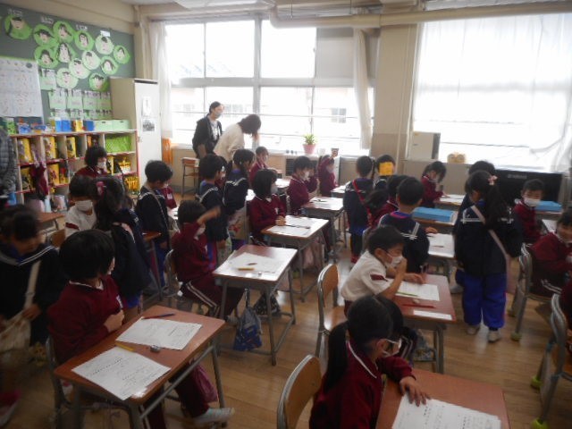 市内の園の年長児が来校し、1年生の授業の様子を見学したり、交流して遊んだりしました