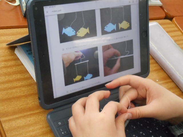 今年度学習した「てこ」の考えを使って、バランスのよいモビールを作りました