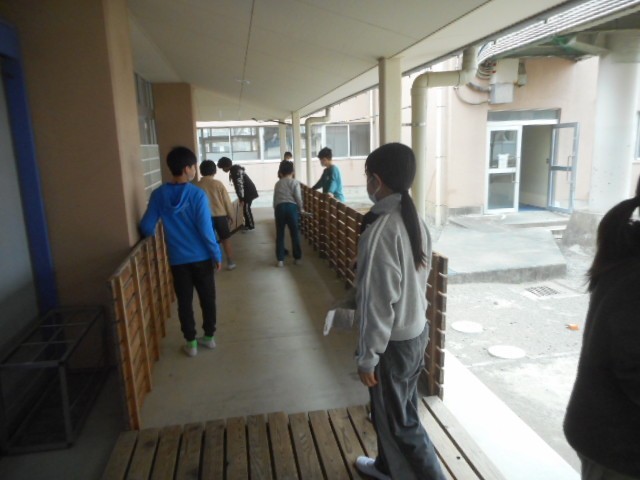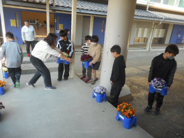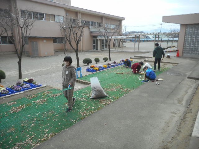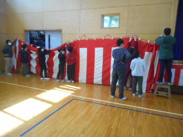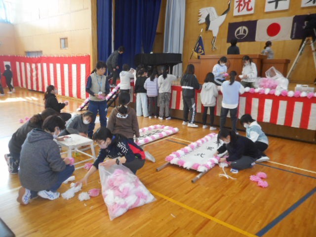 5年生が会場や会場周辺の清掃、式場作りを行いました。