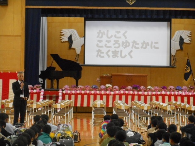 その後、始業式では、教育目標「かしこく、心ゆたかに、たくましく」「みそあじ」の話をしました。
