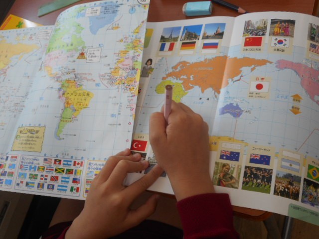 世界の国の位置や国旗について学習しました