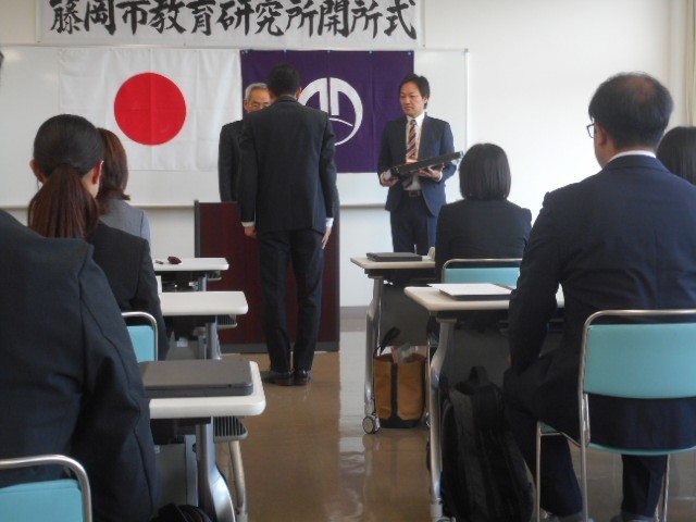 本校の教員も研究に励みます。教育長様、研究所長様、校長会長様から激励の言葉をいただきました。研究の成果は学校で共有し、子どもたちに還元していきたいと思います。