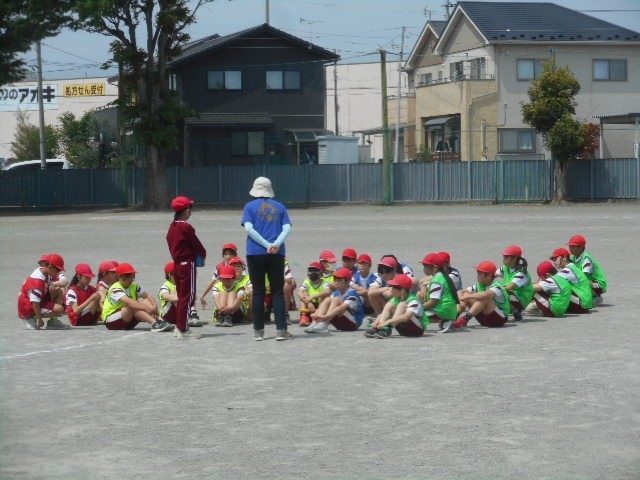 チームに分かれ、短距離のリレーのバトンパスの作戦を考え、練習しました