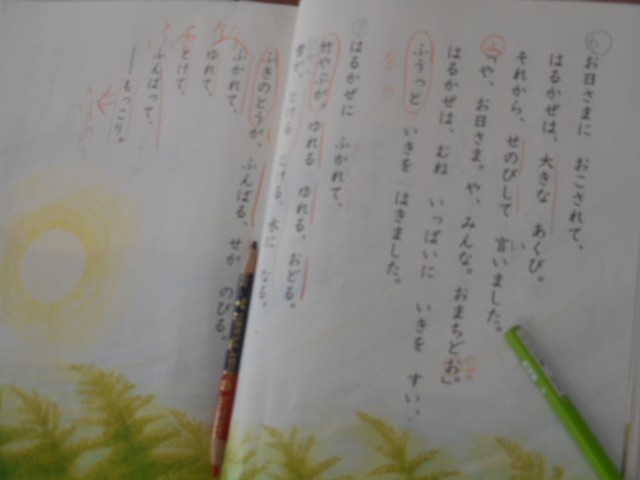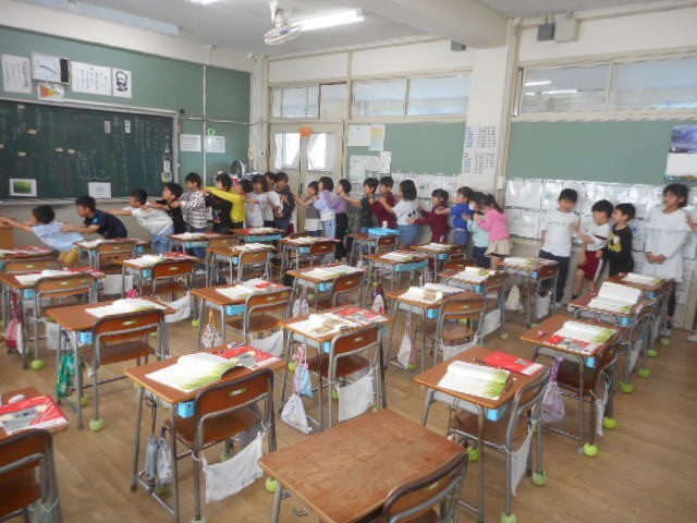 最後の場面をみんなで意見を出し合い、動作も入れ、工夫して音読しました。