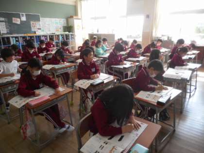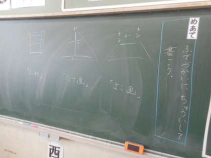 横画や縦画の入りや止め、折れなどに気をつけながらていねいに書きました。