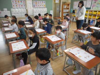 文字をていねいに正しくかけるように鉛筆運びの学習をしました。