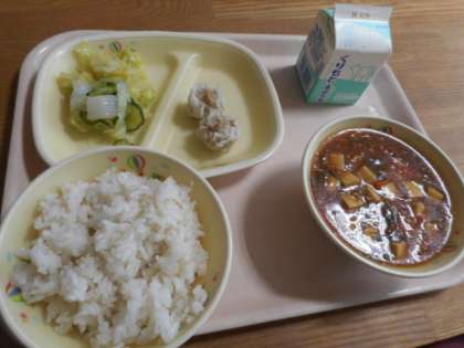 麦ご飯、牛乳、しゅうまい、マーボー豆腐、こんにゃくサラダ