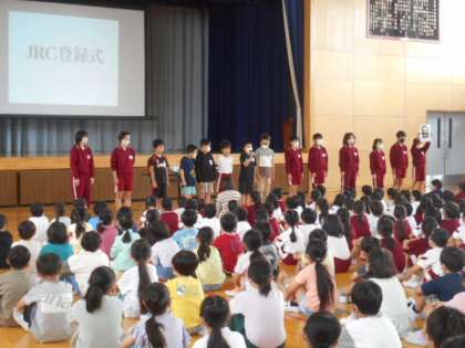 JRCの説明や、誓いの言葉、登録証の提出、1年生へのバッジ授与などを行いました。