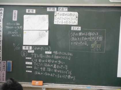 腕の曲がる部分の仕組みについて模型を観察しながら考えました。