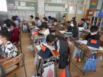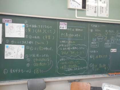 日光を当てたものと当てなかった物を比べ、植物の成長に日光が必要かどうか考えました。