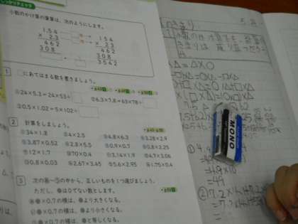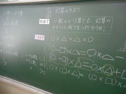 小数のかけ算でも計算の決まりが成り立つか考えました。