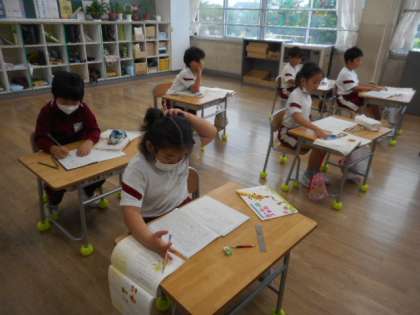 生活科の野菜の観察を国語の書くことに生かしたり、50音表の決まりを見つけたりと、それぞれのめあてに沿って学習しました