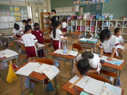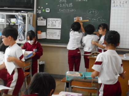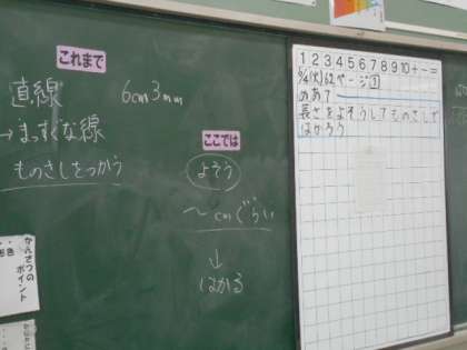 教室の中の物の長さを、予想してから実際に測ってみました。