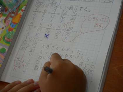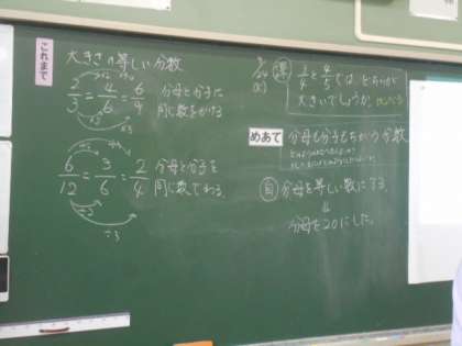 分母の大きさの違う分数の大小を比べる方法を考えました。