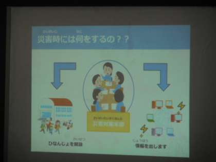 市の地域安全課に講師を頼み、防災のために市が取り組んでいることを教えていただきました。