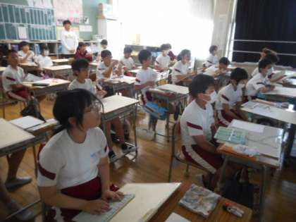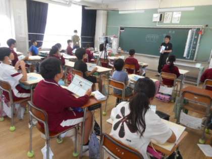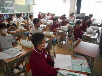 北中の美術の先生に来ていただき、色の作り方や塗り方などを教えていただきました。