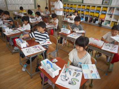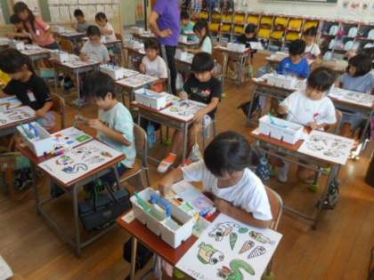 絵を描く会に向け、色を混ぜて自分の感覚にぴったりする色を作って塗る練習をしました。