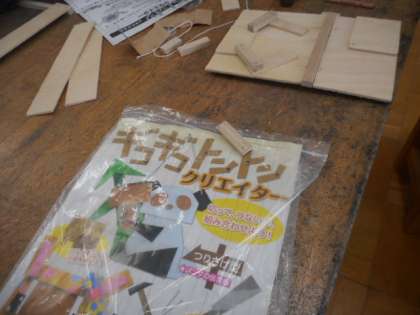 木材をのこぎりで切り、くぎも使いながら組み合わせて作品にしています。