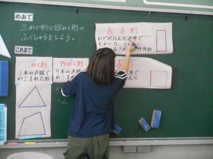 三角形、四角形の特徴の復習をしました。
