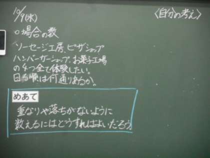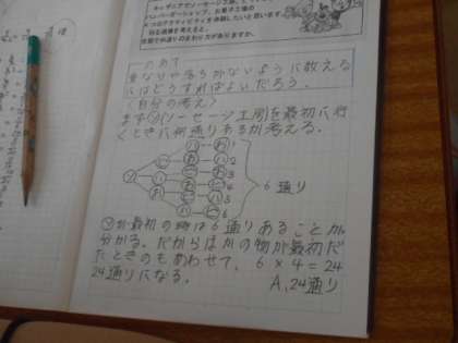 並べ方や組み合わせ方について、起こり得る場合を図や表などを使って考えました。