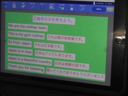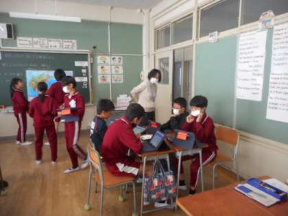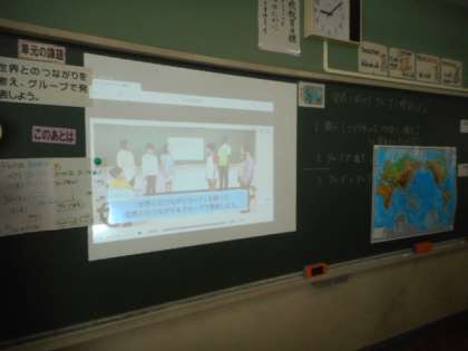自分と世界とのつながりを発表する文を考え、グループで発表します。