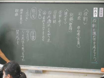 話し合いの進行の役割と工夫を考えました。