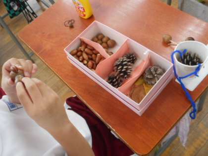 どんぐりや松ぼっくりでおもちゃをつくります。