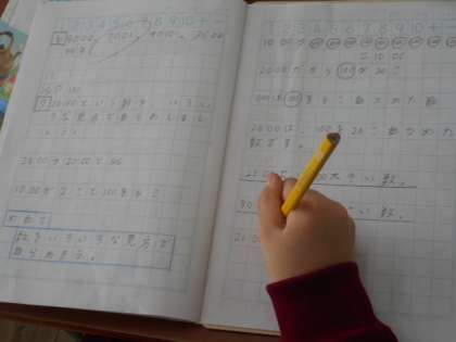 数を○○○○よりいくつ大きい、小さいなど、いろいろな見方で表しました。