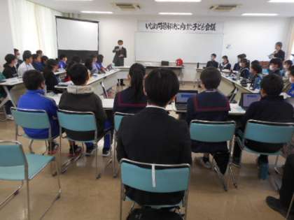 市内全16校から代表児童生徒が教育庁舎に集まり、いじめ問題解決に向けた子ども会議が開催されました。