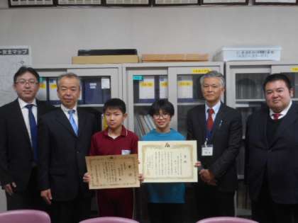 藤岡税務署長、国税調査官、藤岡市法人会青年部会、藤岡法人会の方々がいらっしゃり、入賞した2人の児童を表彰してくださいました。