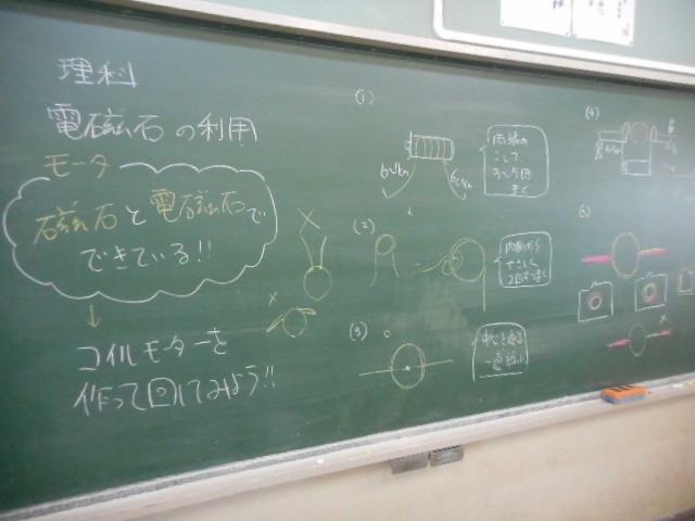 発展の学習としてコイルモーターを作りました