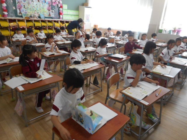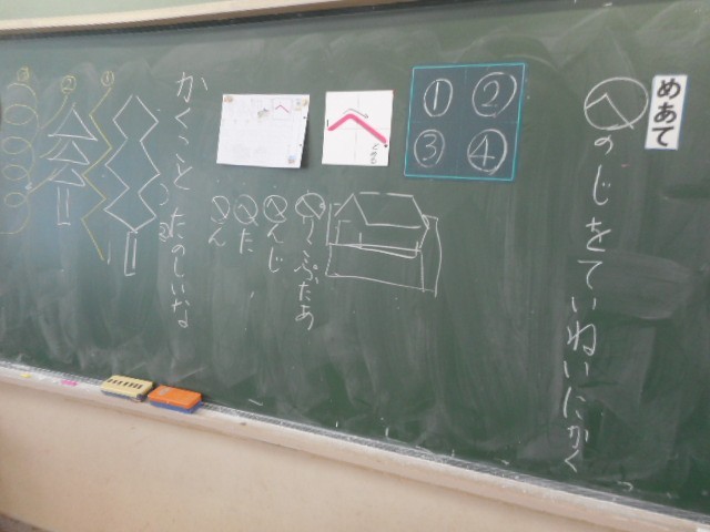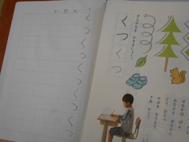 「へ」の字の学習や「くつ」をものと関連付けて書く学習をしました