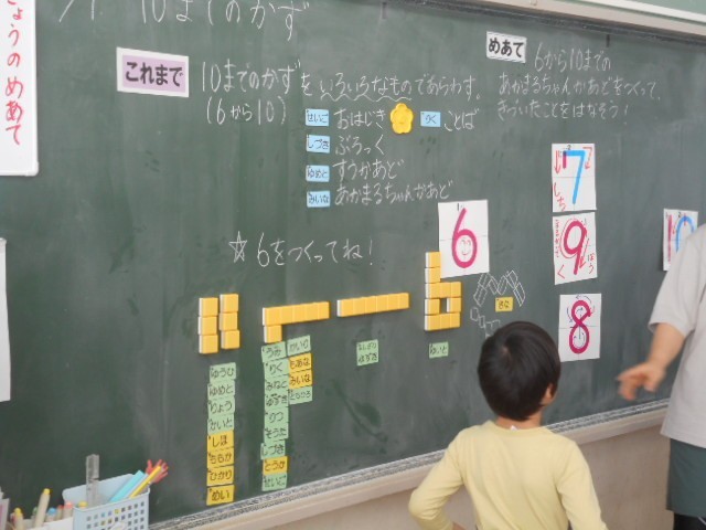 ブロックで数を表したり、数字の書き方、書き順の学習をしたりしました