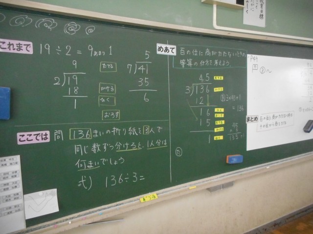 百の位に商がたたないときの筆算の方法を考えました