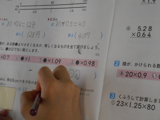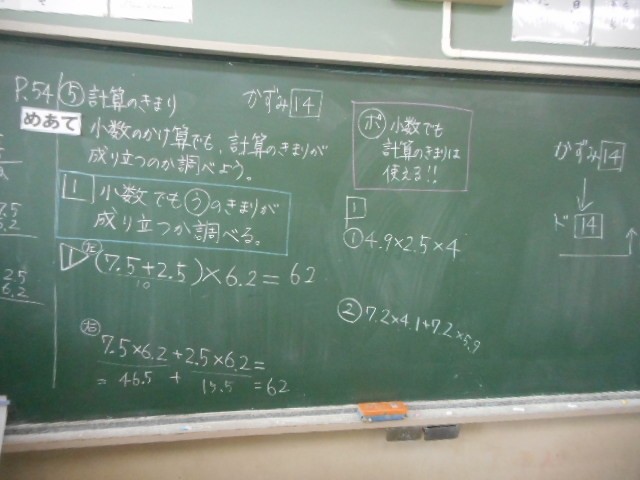 小数のかけ算にも「計算のきまり」が成り立つか考えました