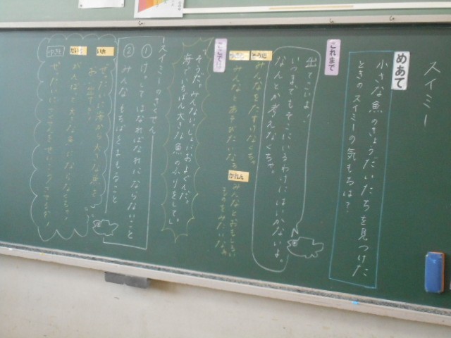 スイミーの行動と心の中について考えたり、ワークシートに取り組んだりしました