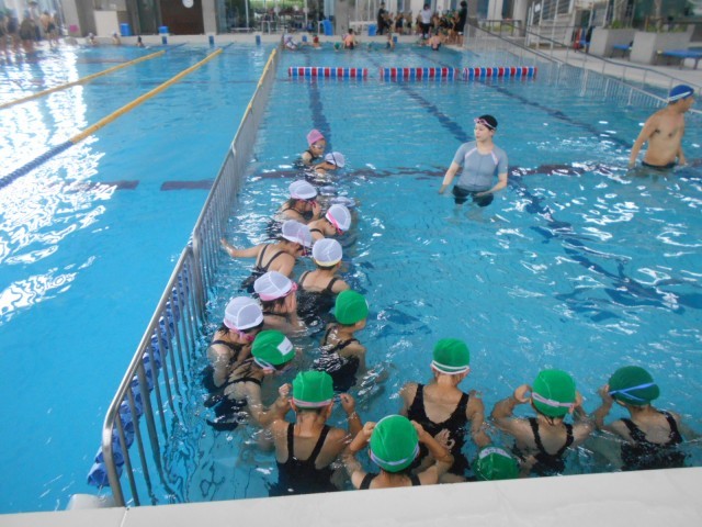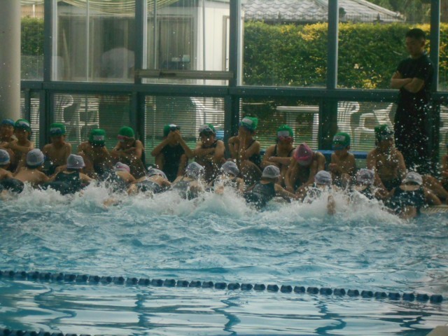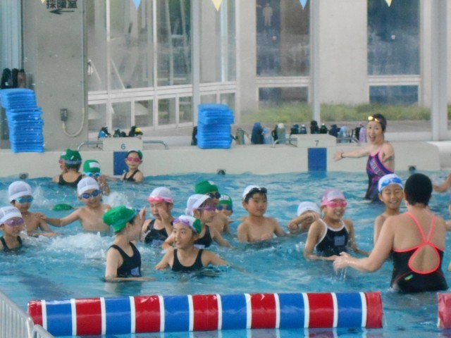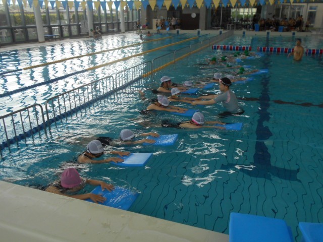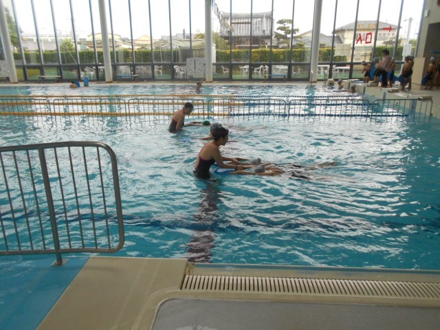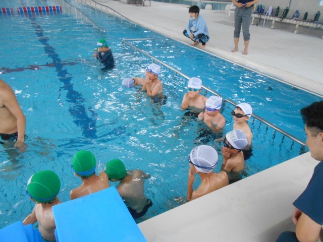 3年生水泳の授業の様子です。3年生の皆さんは、みずとぴあの指導員さんにお世話になって、1学期最後の水泳の授業を受けました。