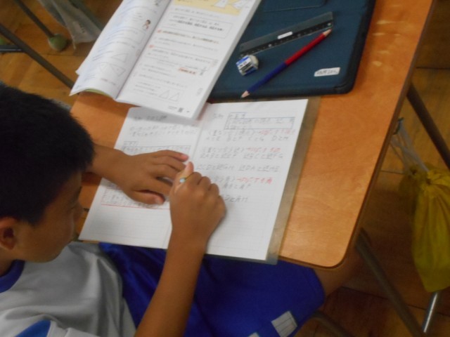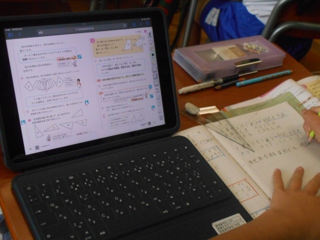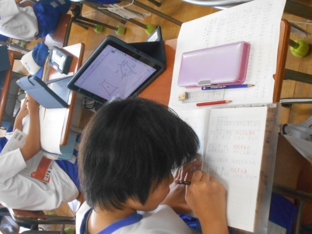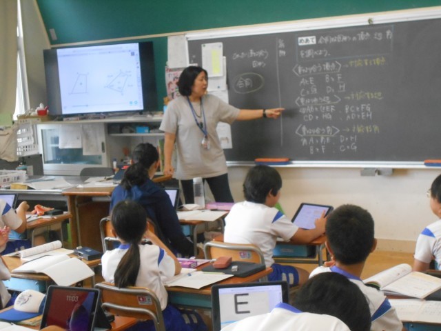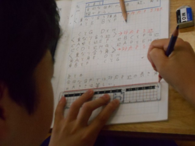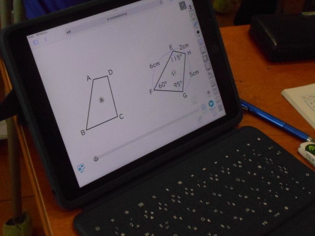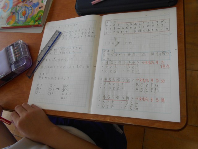 今日のめあては、「合同な図形の頂点や、辺、角を調べよう」