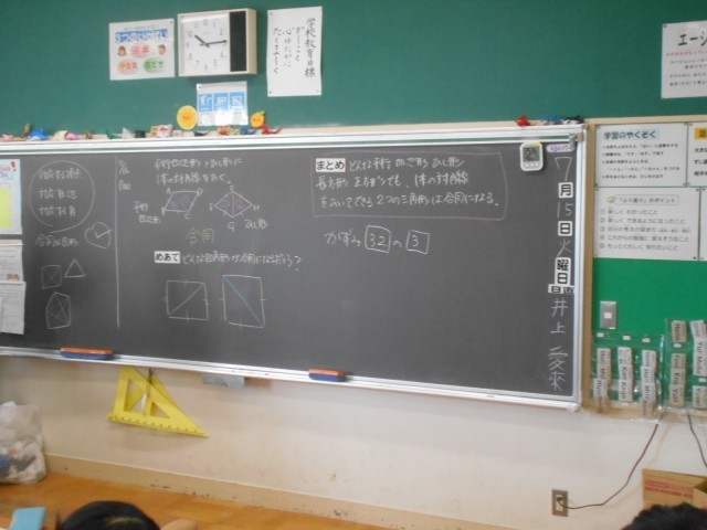 今日のめあては「どんな四角形が合同になるのだろうか?」