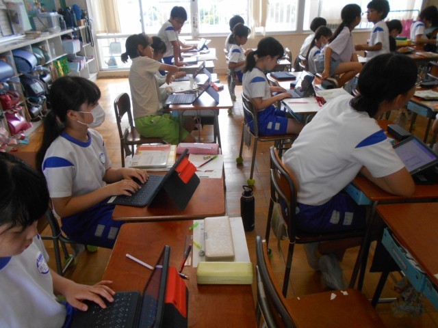 教室に行ったときには、授業のまとめと振り返りをしているところでした