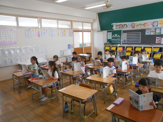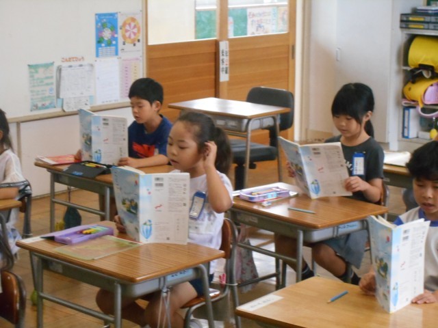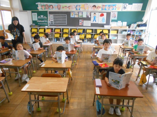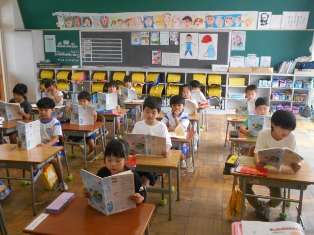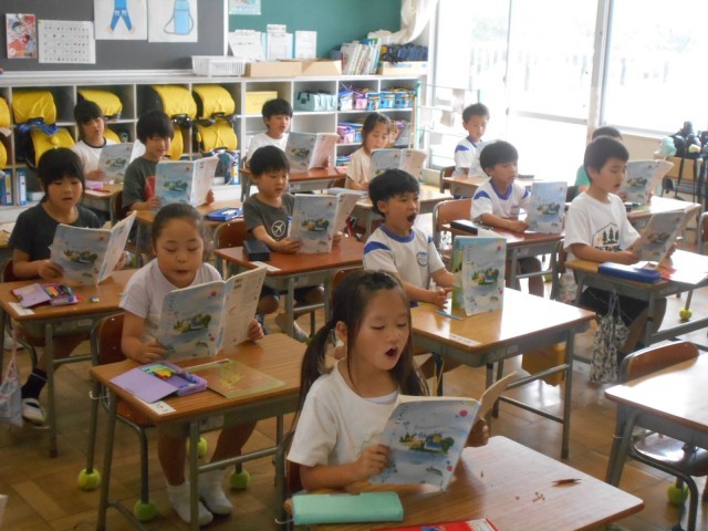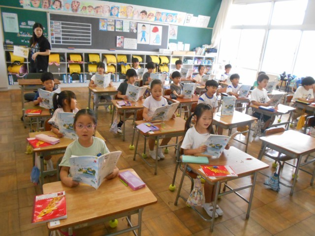 1年生も、1学期は3日後に終業式を迎えます。ひらがなから始めた1年生の「こくご」の授業ですが、多くのことを覚えて、長い文章も上手に読めるようになりました。